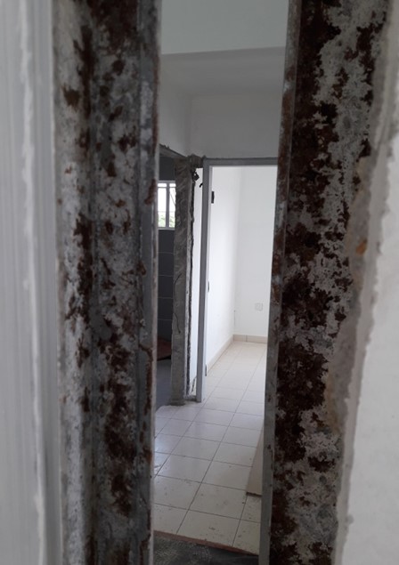 Premature rust stains and perforation were found on approximate 1,800 galvanised steel door frames in a housing development project. Small areas of rust stain are seen on both vertical members of the frame, perforation through the frame thickness was verified by removal of the cement mortar filling. The inner surface of the back opening revealed mixture of powdery white rust and reddish-brown porous corrosion products, evidenced the corrosion of zinc and steel respectively.